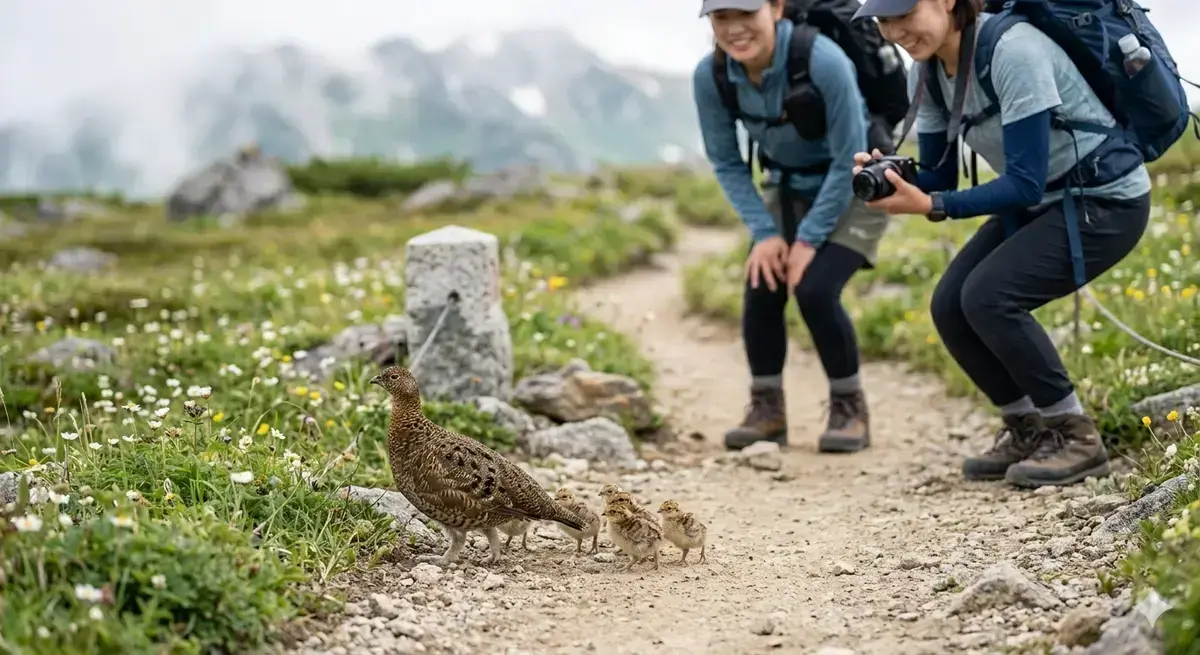 ■ 精神的な近さ: 登山道のすぐ脇で、のんびりと砂浴びをしたり、雛を連れて歩いたりする姿を間近で見守れる。この「自然と人間が共生している感覚」をダイレクトに味わえる体験が、特別な愛着を育んでいます。